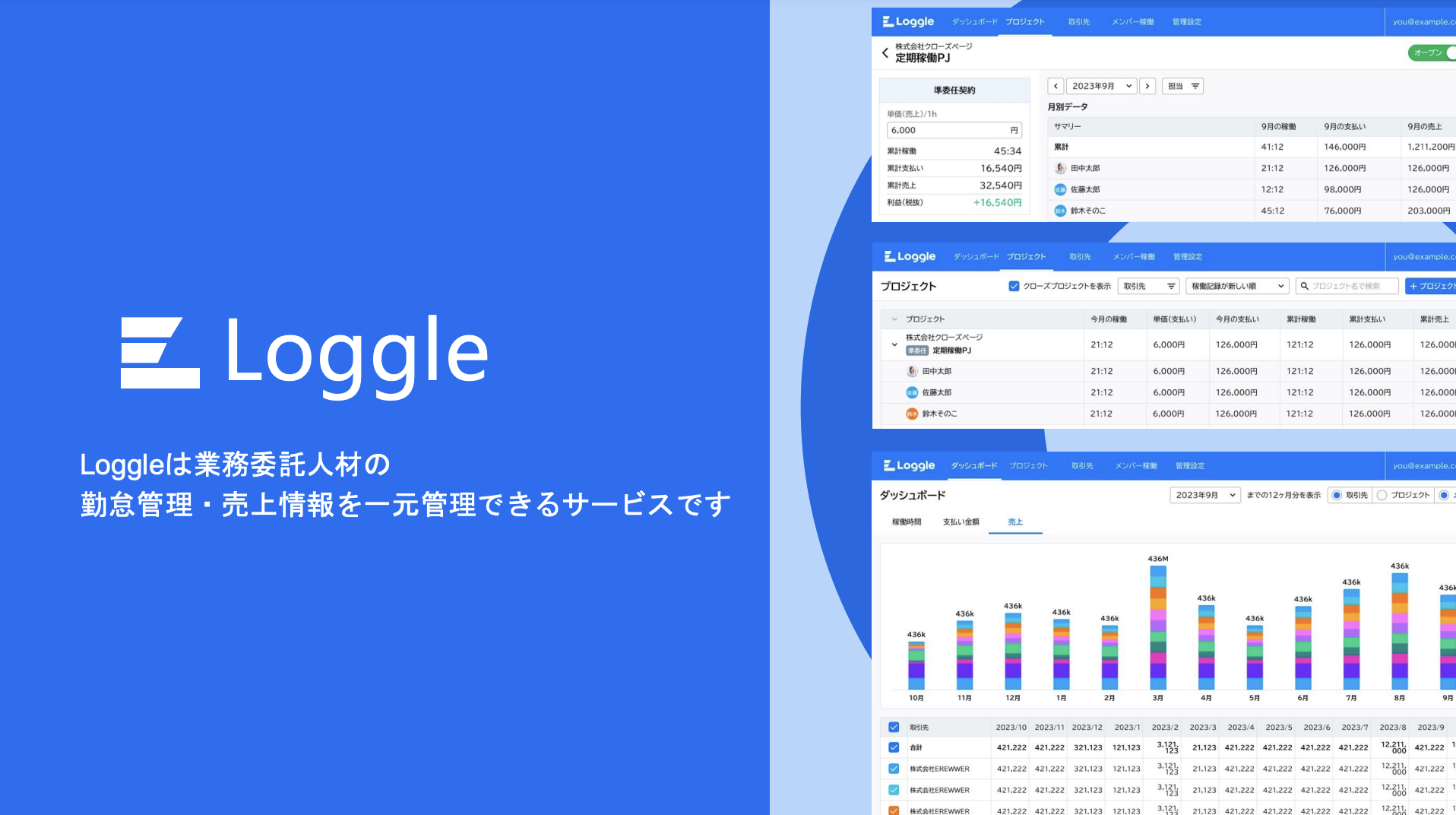 Loggleは、プロジェクトの稼働時間と収支を簡単かつ効率的に管理できます。